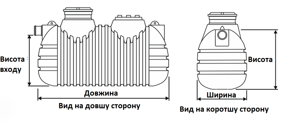 Стандартна висота оглядового люка резервуара становить близько 0,5 м (від дна вхідної труби). Його можна збільшити за рахунок використання та підключення надбудов.