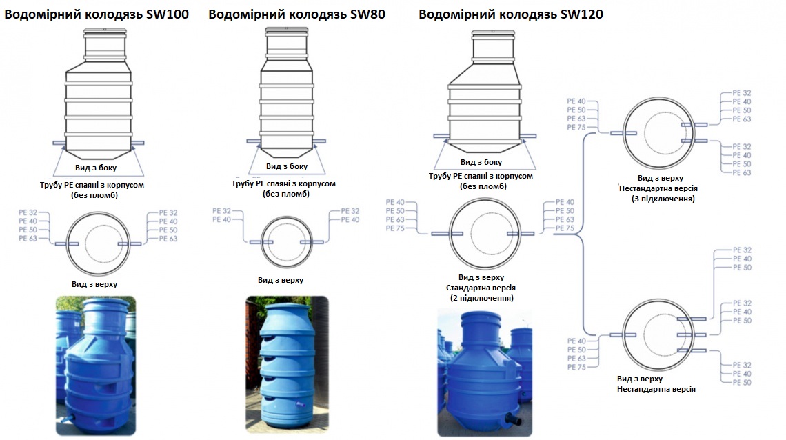 Виробник водомірних колодязів „Wobet-Hydret” пропонує колодязі, призначені для установки в будь-якій місцевості, незалежно від стану грунту і води. Конструкція водомірних камер забезпечує герметичність і захист встановлених всередині приладів. Доступ всередину камери здійснюється через оглядовий люк діаметром близько 0,6 м. Для захисту водомірної камери від відпливу виконується бетонна засипка (в нижній частині). Виготовлений відповідно до інструкції, що додається, забезпечує захист камери від плавучості.